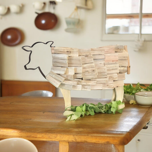 Driftwood Cow Statue - Handmade