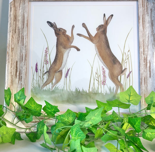 Framed Picture of Boxing Hares