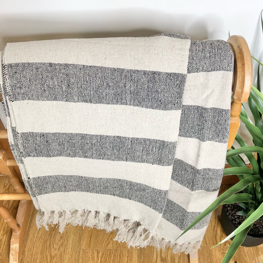 So Cosy Dark Grey & Cream Striped Boho Throw Blanket