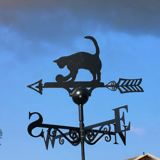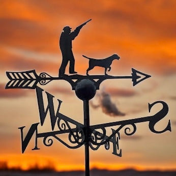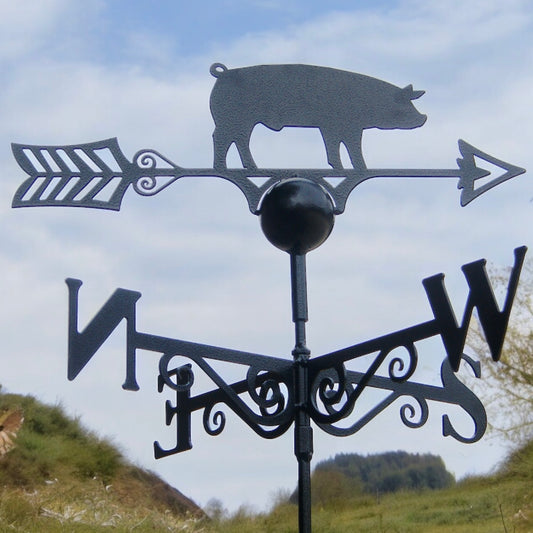 All of the weather vane options we stock here are made in the UK from a solid steel construction and coated in a durable black antique polyester paint, which ensures they are strong enough to put up with the British elements - indeed, the wind should be the only thing affecting these weather vanes.